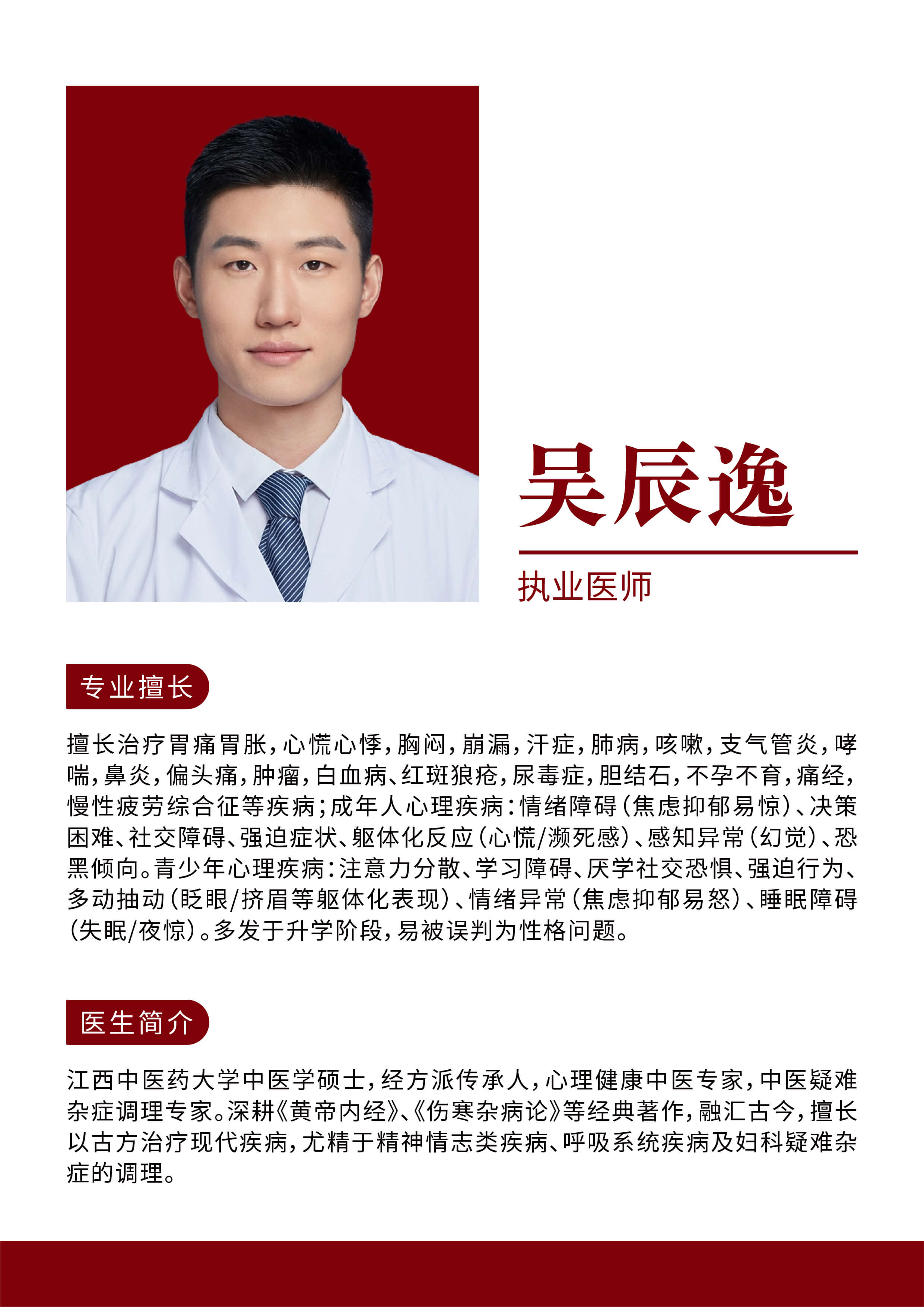 通过中药内调及中医外治手法,专注脾胃、睡眠、结节、抗衰、运动损伤、顽固性疼痛、生长管理、慢病康复等特色领域。提供线上线下一体化服务,支持远程问诊,打造"互联网+中医"智慧医疗新体验。